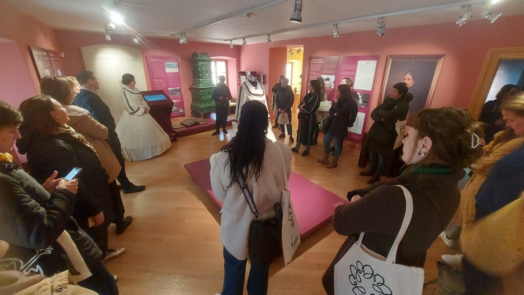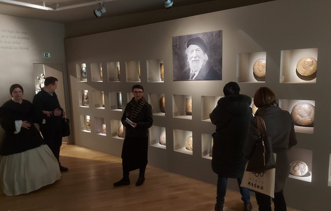 Ogled smo nadaljevali v Mestnem muzeju Krško, kjer nas je pričakalo prav posebno presenečenje –pridružila se nam je namreč Josipina Hočevar, še ena pomembna in znana osebnost Krškega. Josipina Hočevar je bila skupaj z možem Martinom velika mecenka in dobrotnica, ki je z investicijami v šolstvo, zdravstvo in infrastrukturo preobrazila Krško v moderno mesto. Tudi zato so ji v Mestnem muzeju Krško posvetili stalno razstavo.