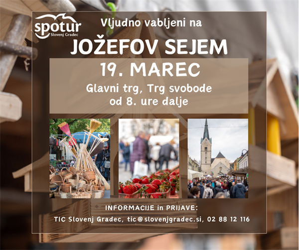 Jožefov sejem, ki je prvi izmed treh sejmov v letu, bo letos potekal v sredo, 19. marca, na Glavnem trgu in Trgu svobode v Slovenj Gradcu, od 8. ure naprej.